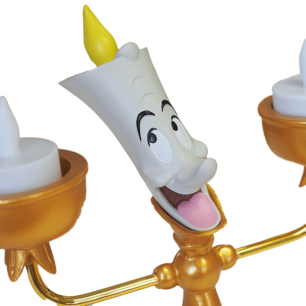 映画の中ではお城全体に掛けられた呪いによって人間から蝋燭台になってしまったルミエール。ルミエールの蠟燭部分はLEDのライトが光る仕様でルミエールの表情と相まって、もっとお部屋が明るくなりますね。コグスワースと一緒に飾るとお家にあの名コンビがいるかのようです。