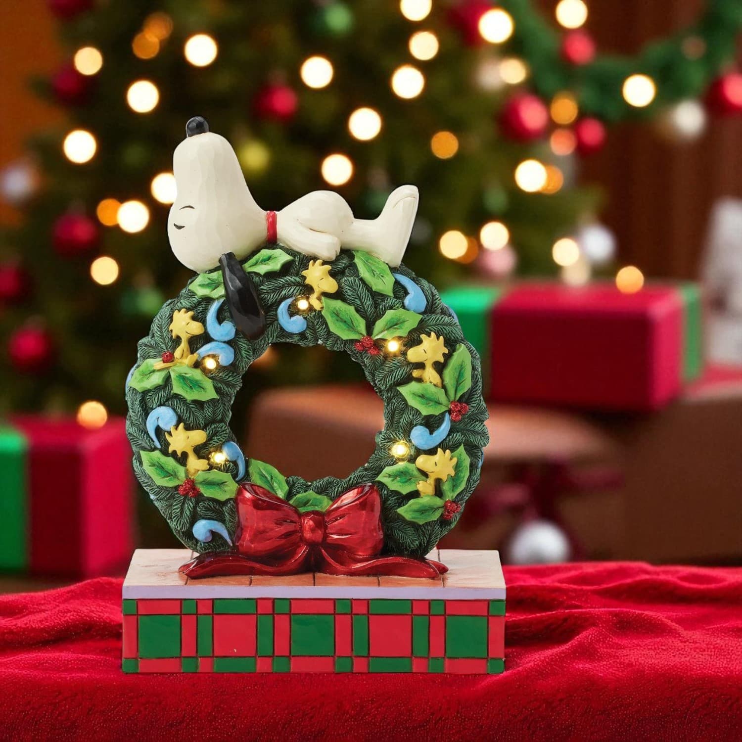 仲良しのウッドストックたちが可愛く飾り付けた?飾り付けられた?リースが、とっても可愛いクリスマスフィギュアです。
