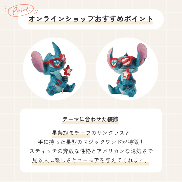 小さいながらも存在感たっぷりのミニサイズシリーズで、映画『リロ&スティッチ』ファンや、アメリカンテイストのインテリアが好きな方へのギフトにもおすすめです。