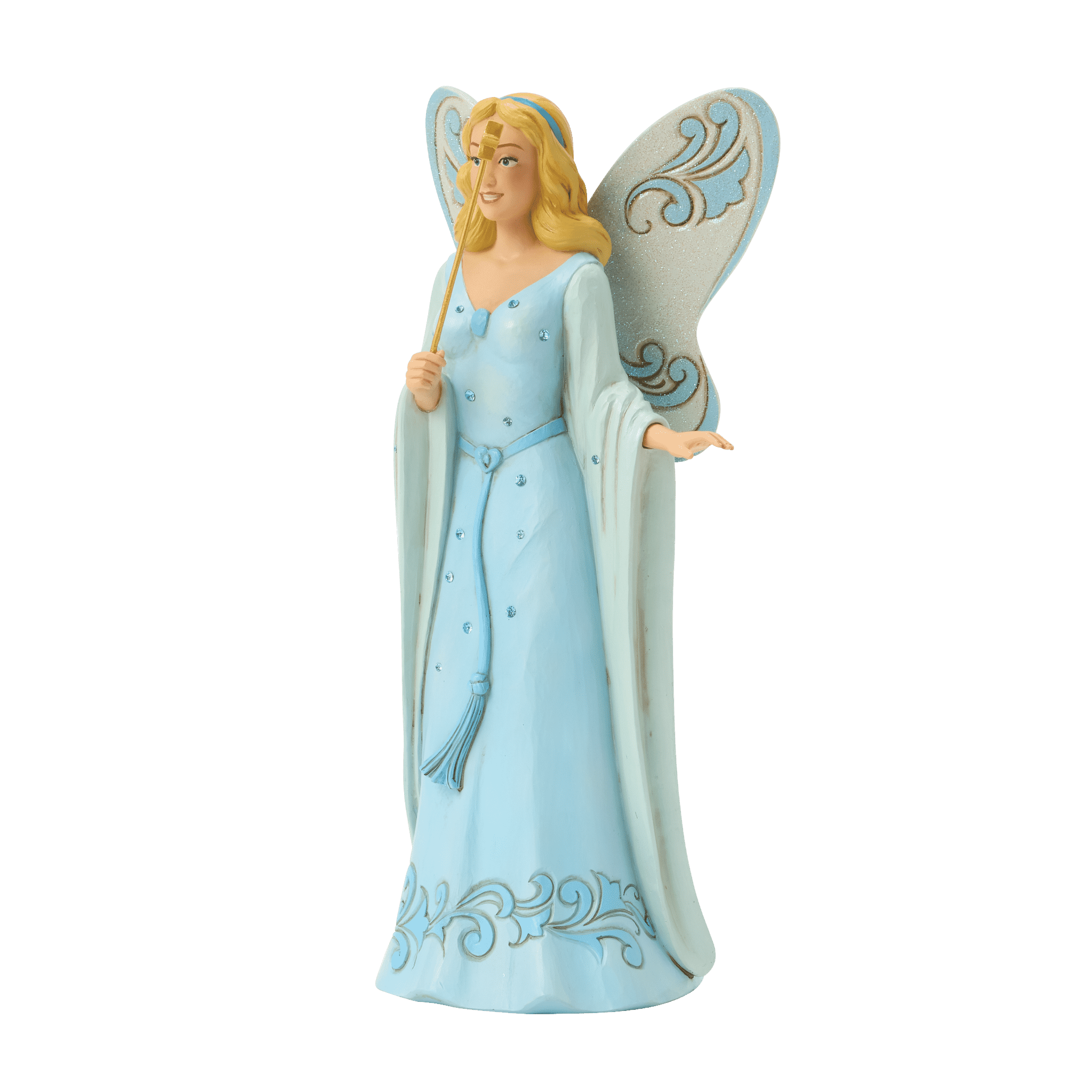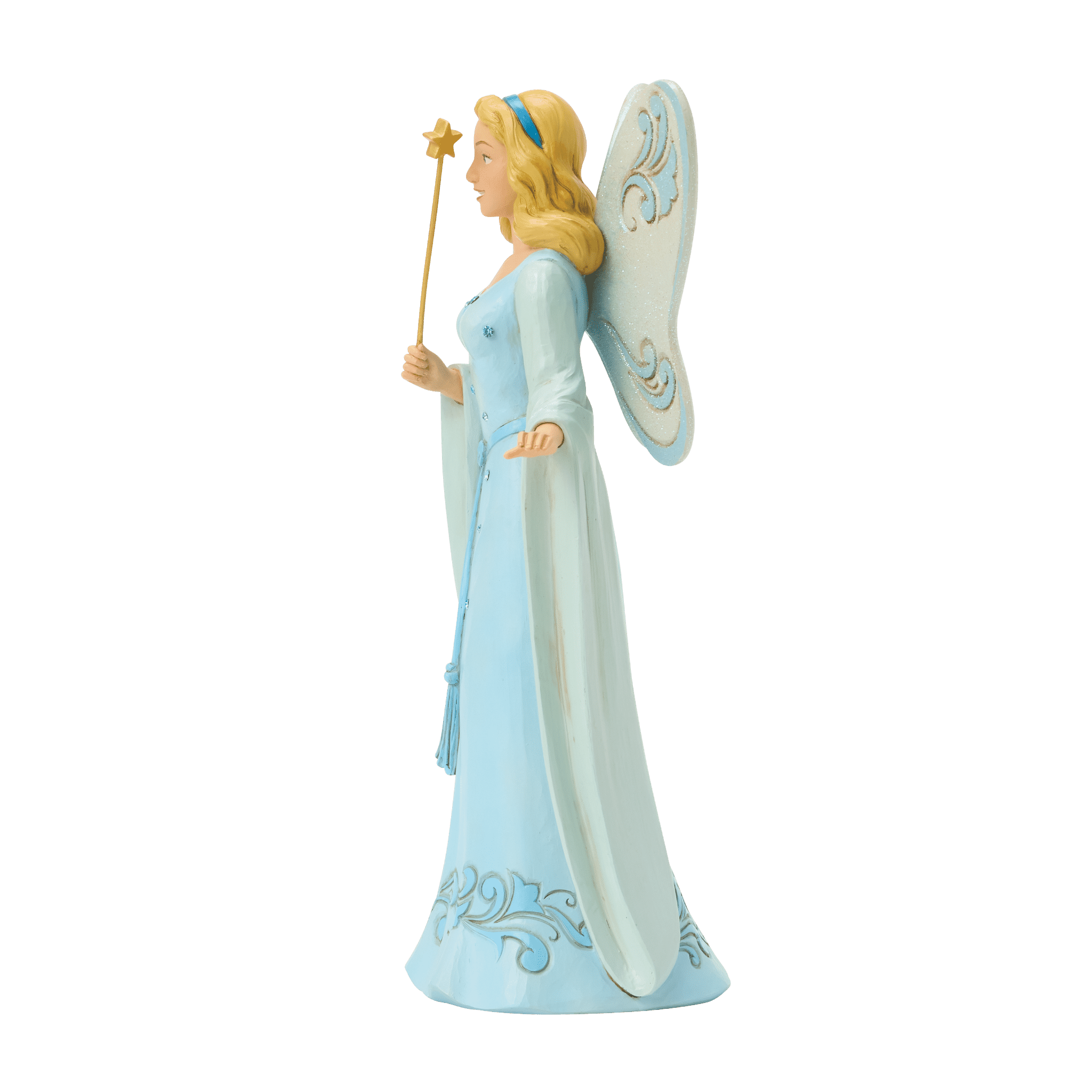 映画そのものの透明感のあるブルードレスを纏い、ブルーの瞳そして背中には妖精ならではの羽根を付け美しさ際立つフィギュアになります。