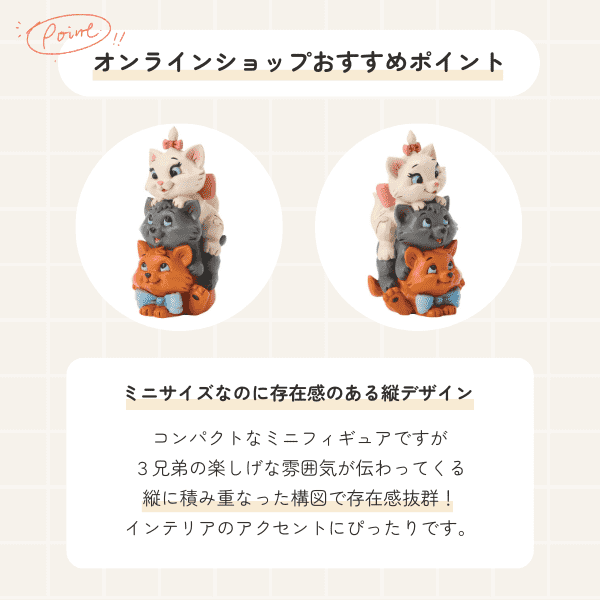 トゥルーズが土台となり、ベルリオーズとマリーが明るく微笑みバランスを取りながらその上にのっている姿は可愛さに溢れ、見ている誰もが癒されるフィギュアです。