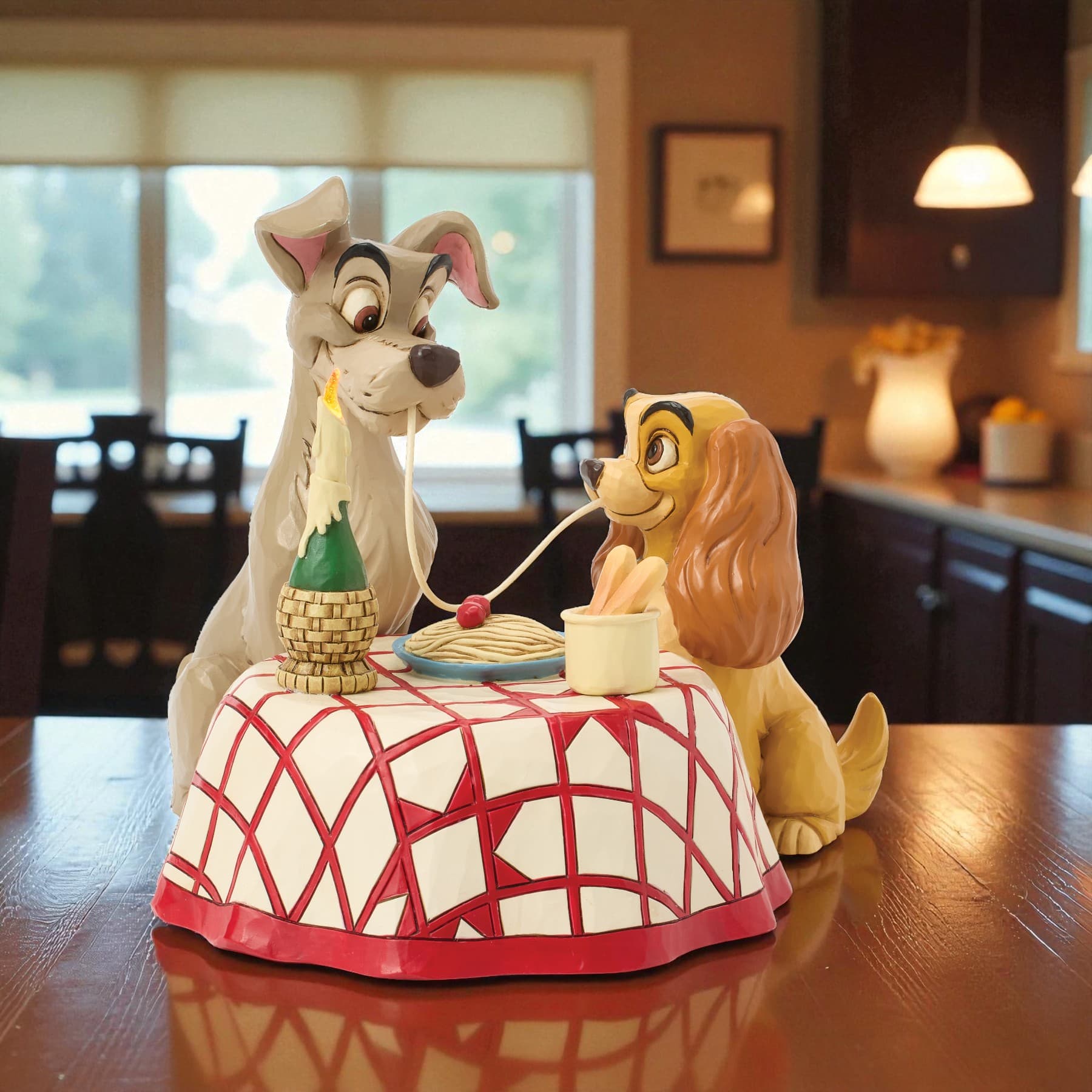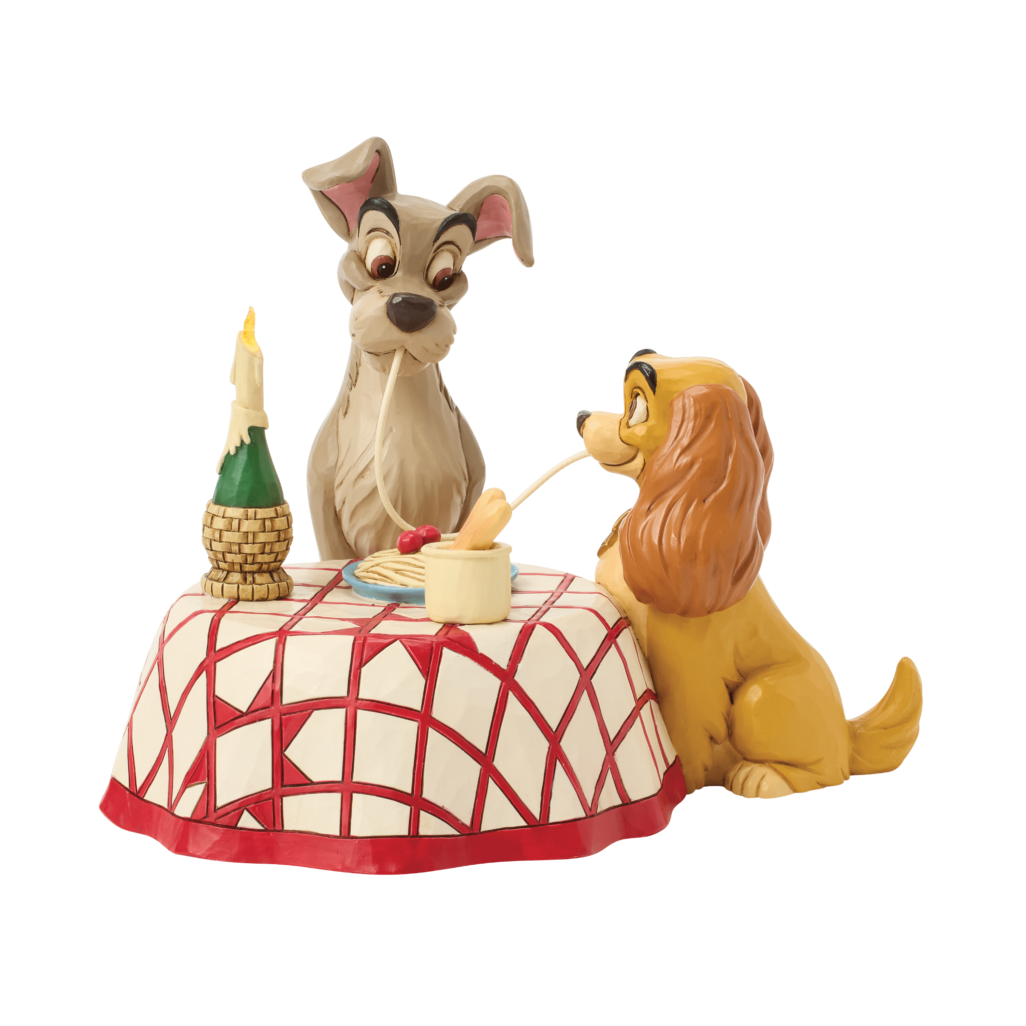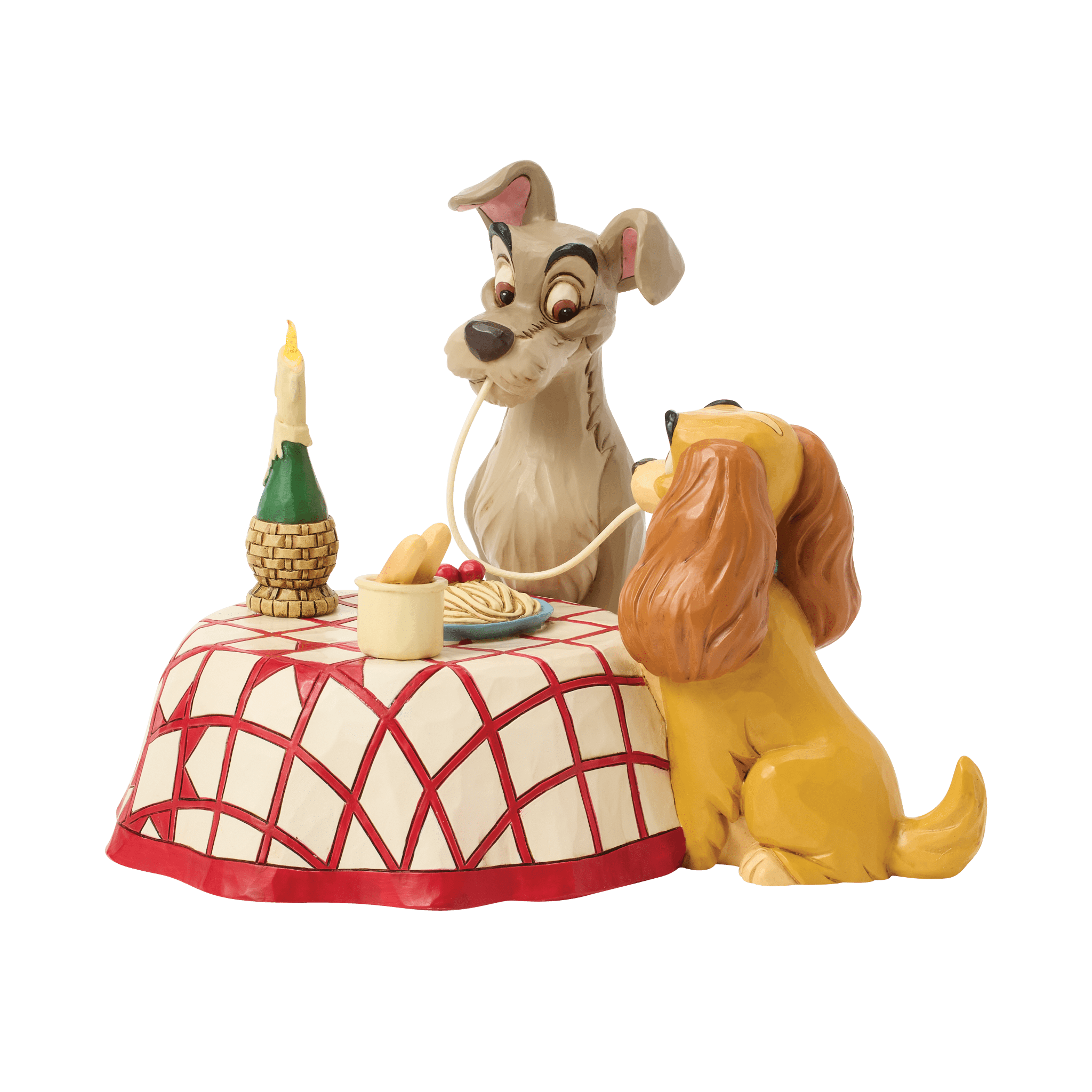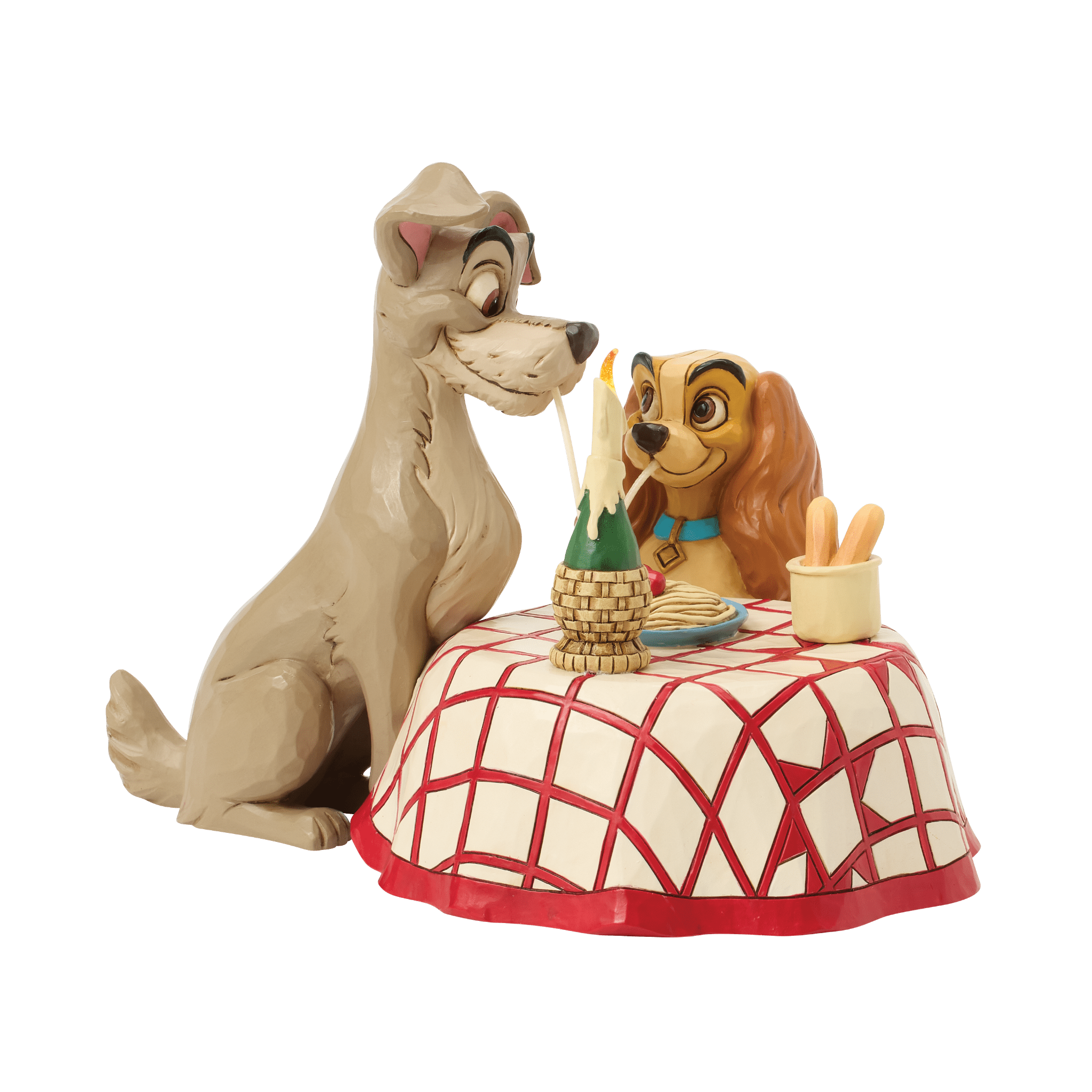 映画「わんわん物語」で誰もが心をときめかせた、レディとトランプのスパゲッティシーンを立体化したフィギュアです。