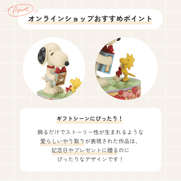 スヌーピーとウッドストックの優しい絆が感じられる、心あたたまるフィギュアです。