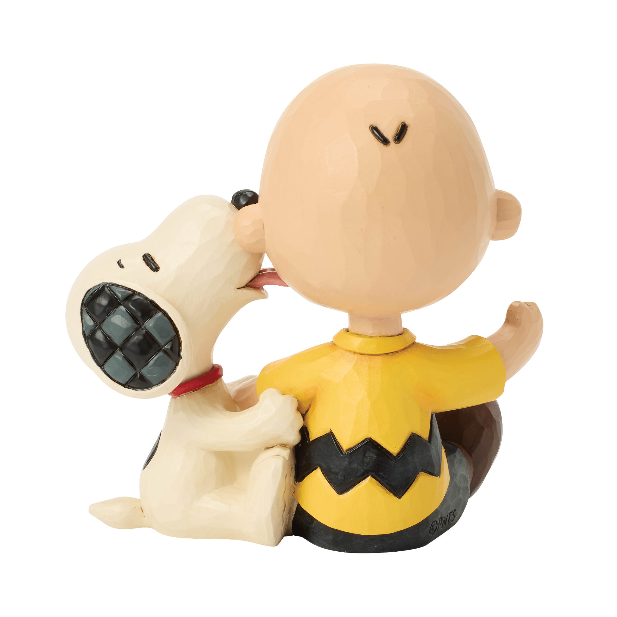 優しく微笑むチャーリー・ブラウンの頬にキスをするスヌーピーの姿が、二人の深い絆と愛情を表現しています。