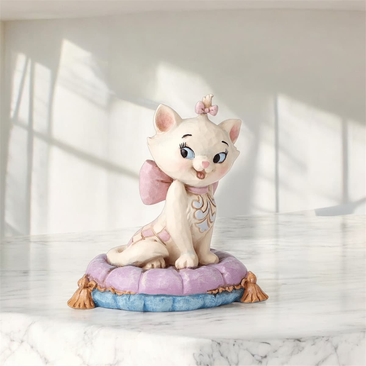クッションにちょこんと座るポーズは可憐さと気品を兼ね備えた印象で、飾る空間をやさしく彩ってくれます。