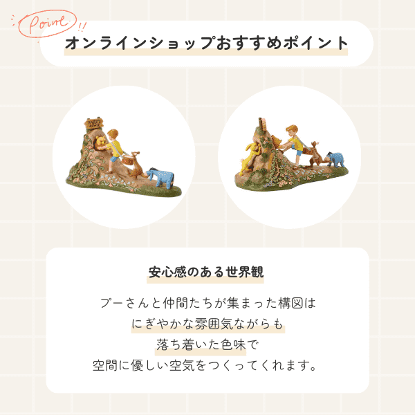 くまのプーさんと仲間たちが集うほほえましくて幸せに満ちた世界観を、Disney Traditionsならではの繊細な造形で表現しています。