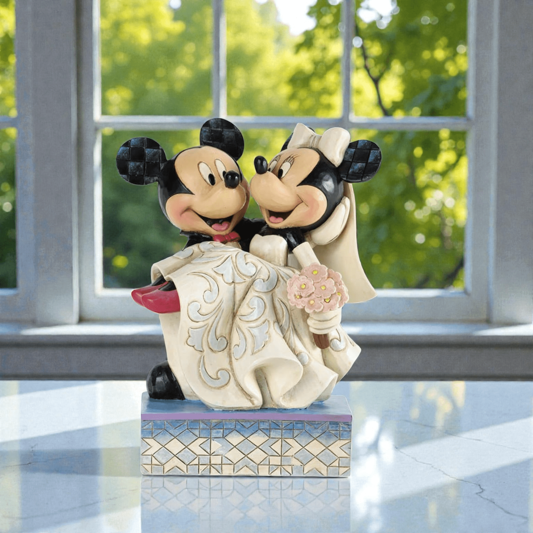 タキシード姿のミッキーと純白のドレスに身を包んだミニーが寄り添う、見ているだけで幸せな気持ちにさせてくれるロマンチックなデザインです。
